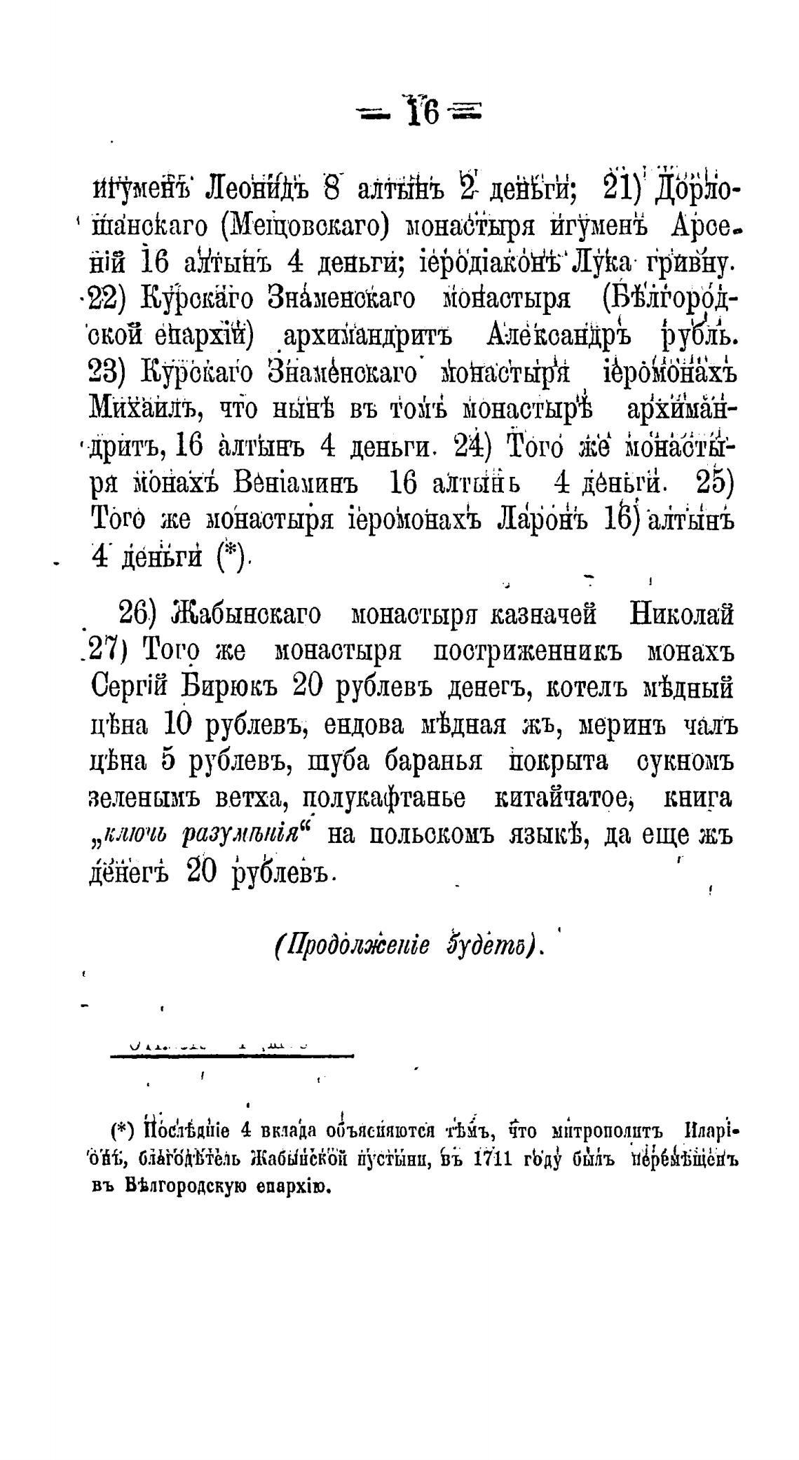 26) Жабынскаго монастыря казначей Николай
