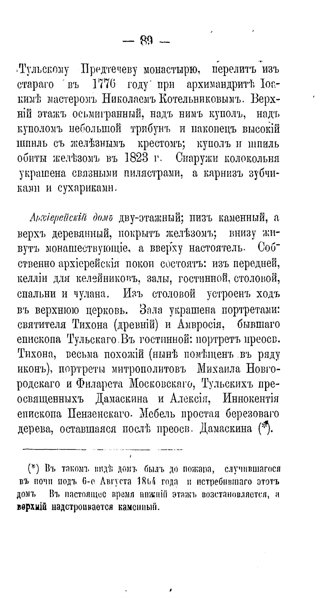 Тульскому Предз•ечеву монастырю, перелить изъ