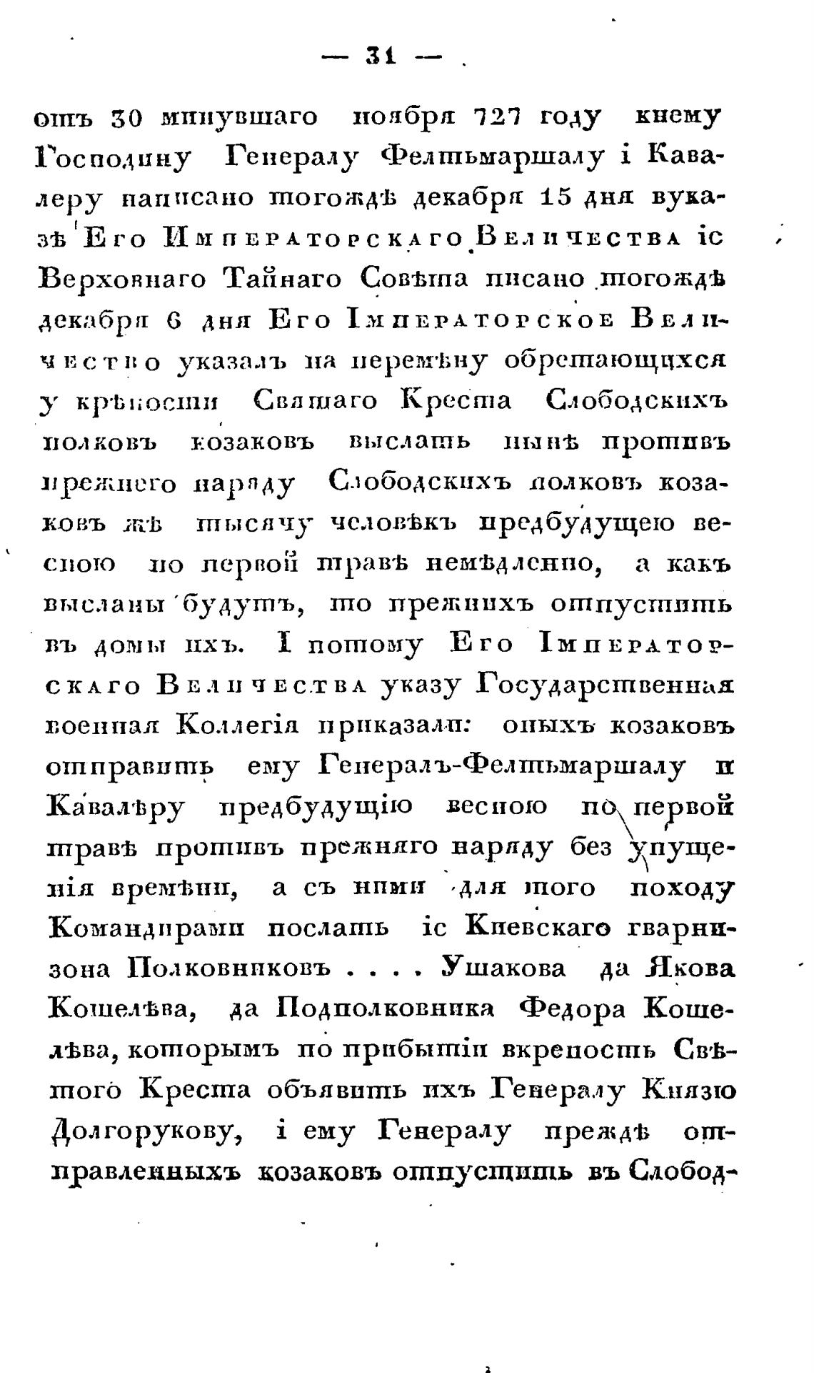 правленцыхъ цозаковъ ошпусщишь въ Слобод-
