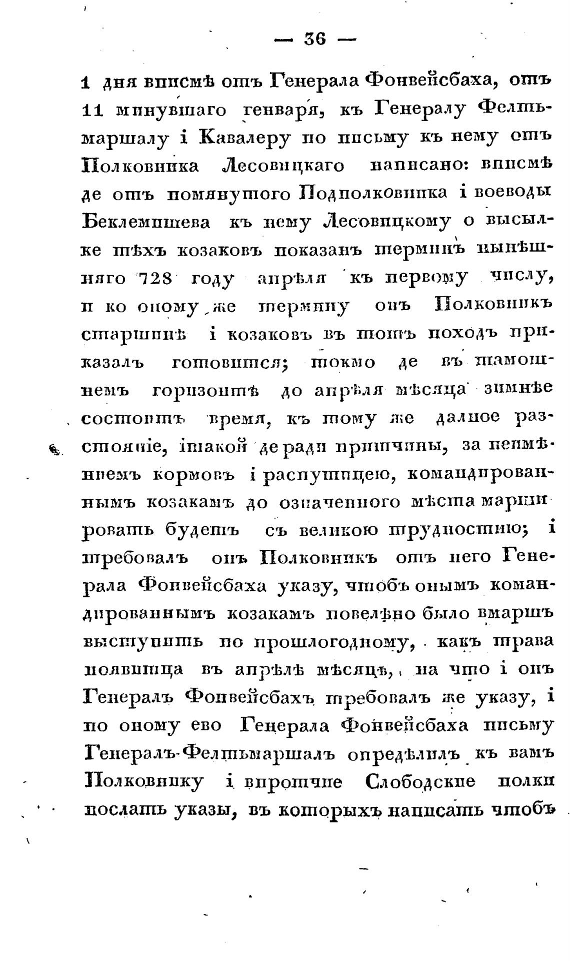 дированнымъ козакамъ повел$но было вмаршъ