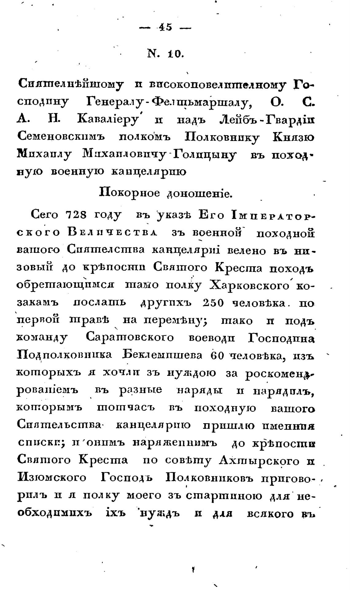 Михаилу Мцхаиловпчу - Голицыну въ поход •
