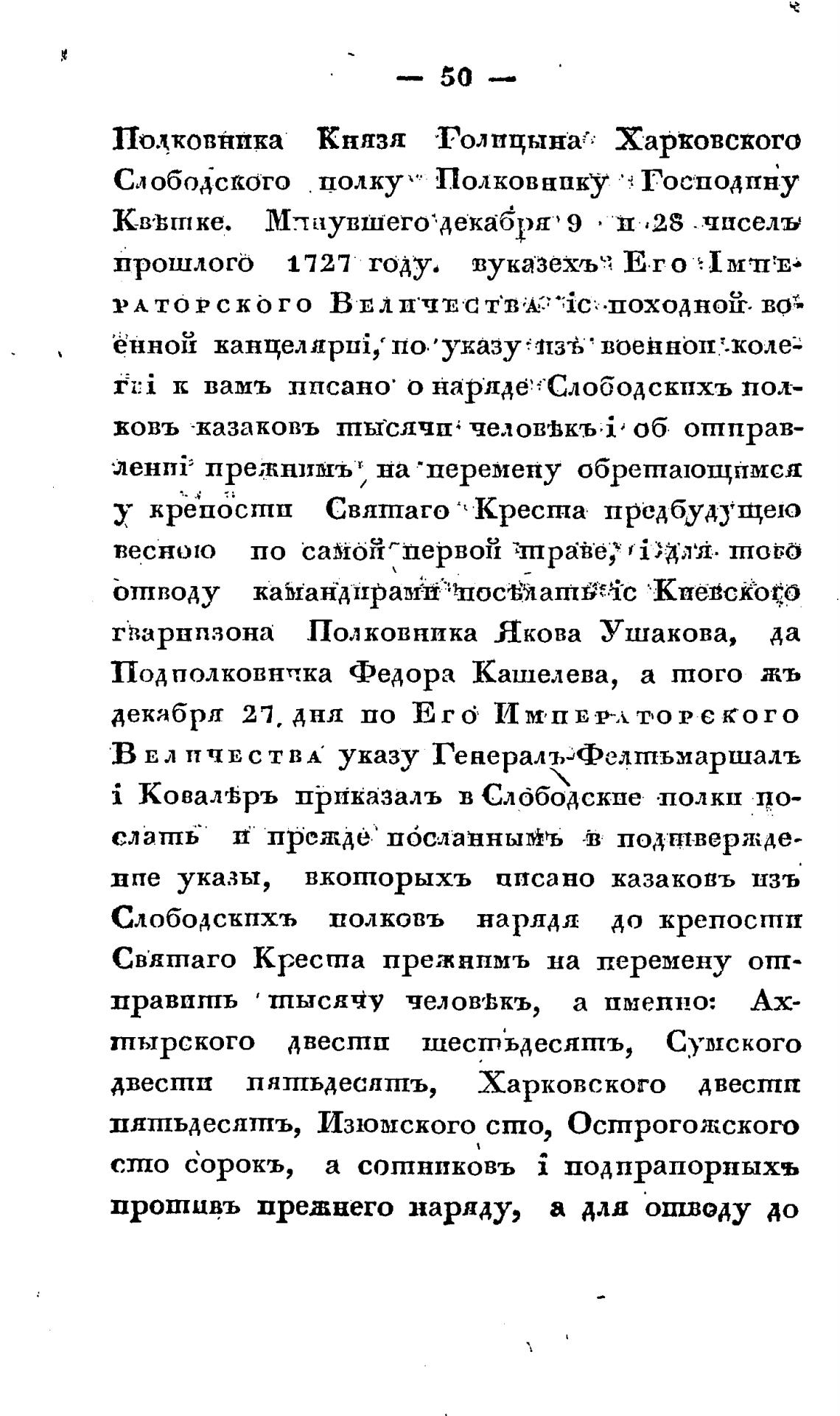 пяшьдесяшъ, Изюмского сто, Острогожского