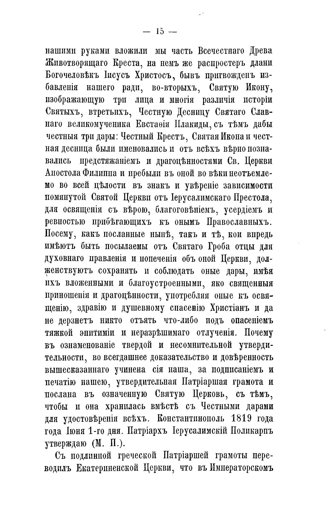 помянутой Святой Церкви отъ јерусалимскаго Престола,