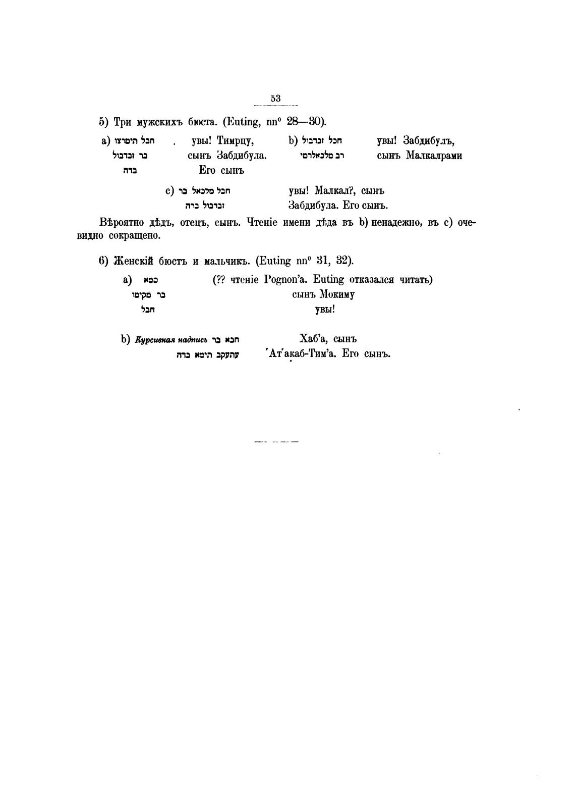 5) Три мужскихъ бккта. (Euting, пп') 28—Ж)).