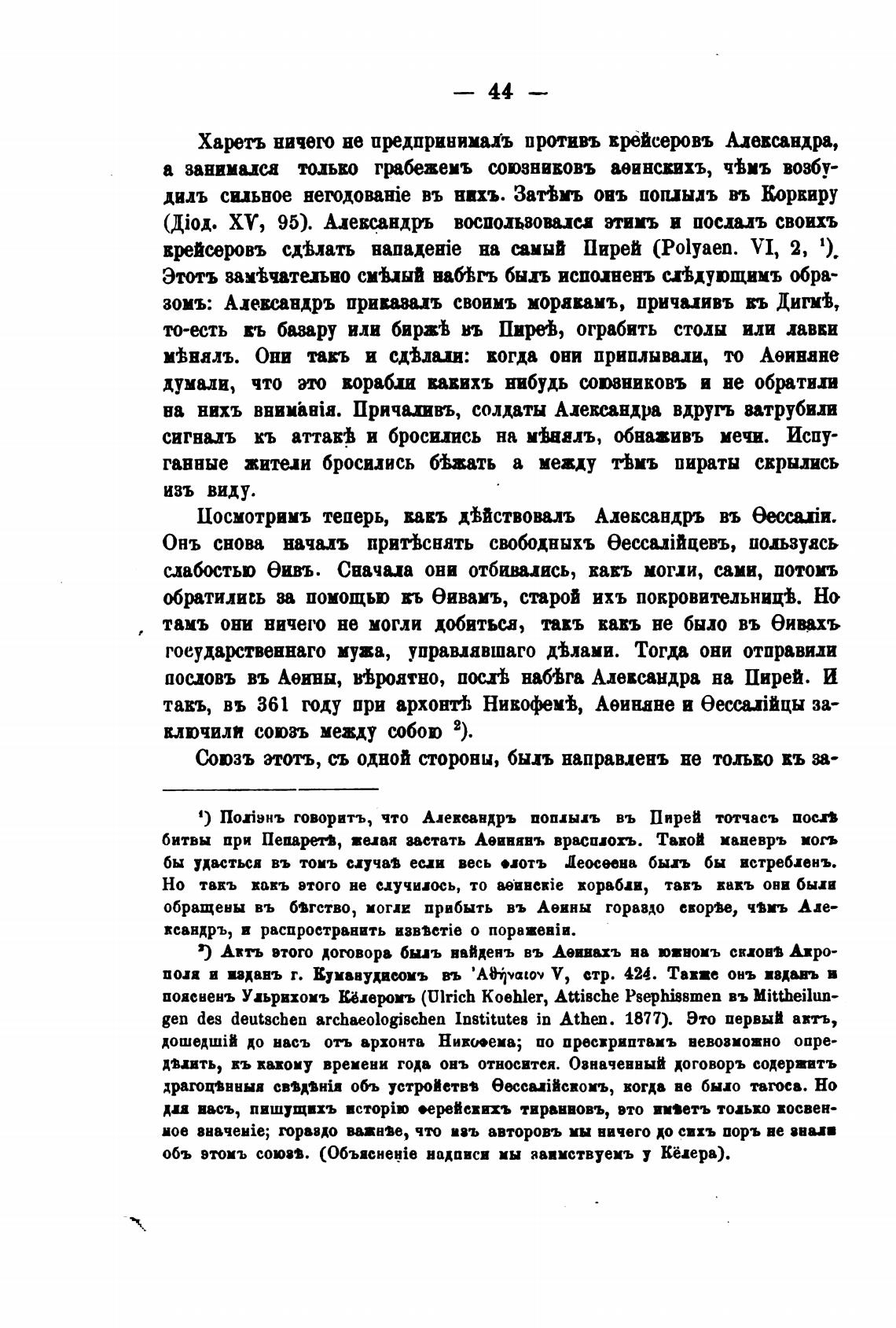 1) По"нъ говорить, что Алекондръ поплыл въ Пиреи тотчасъ восп