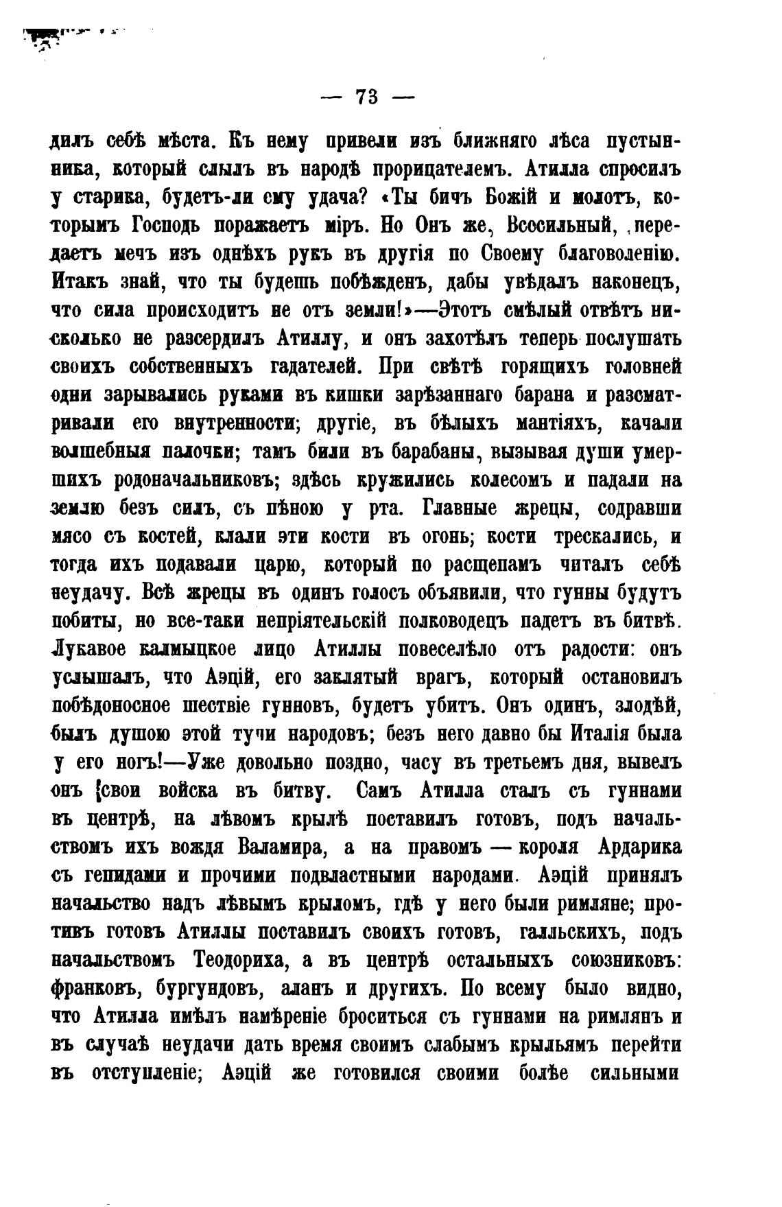 онъ [свои войска въ битву. Самъ Атилла сталь съ гуннами