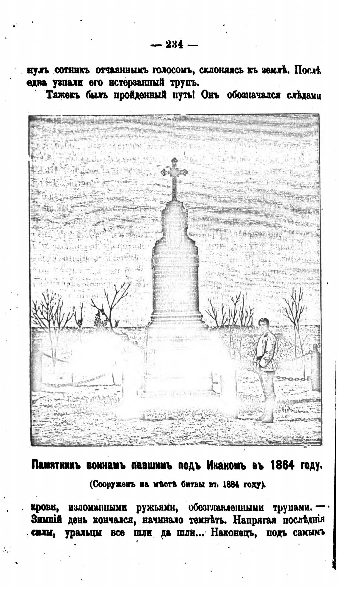 Памятникъ воинамъ павшииъ подъ Иканомъ въ 1864 году.