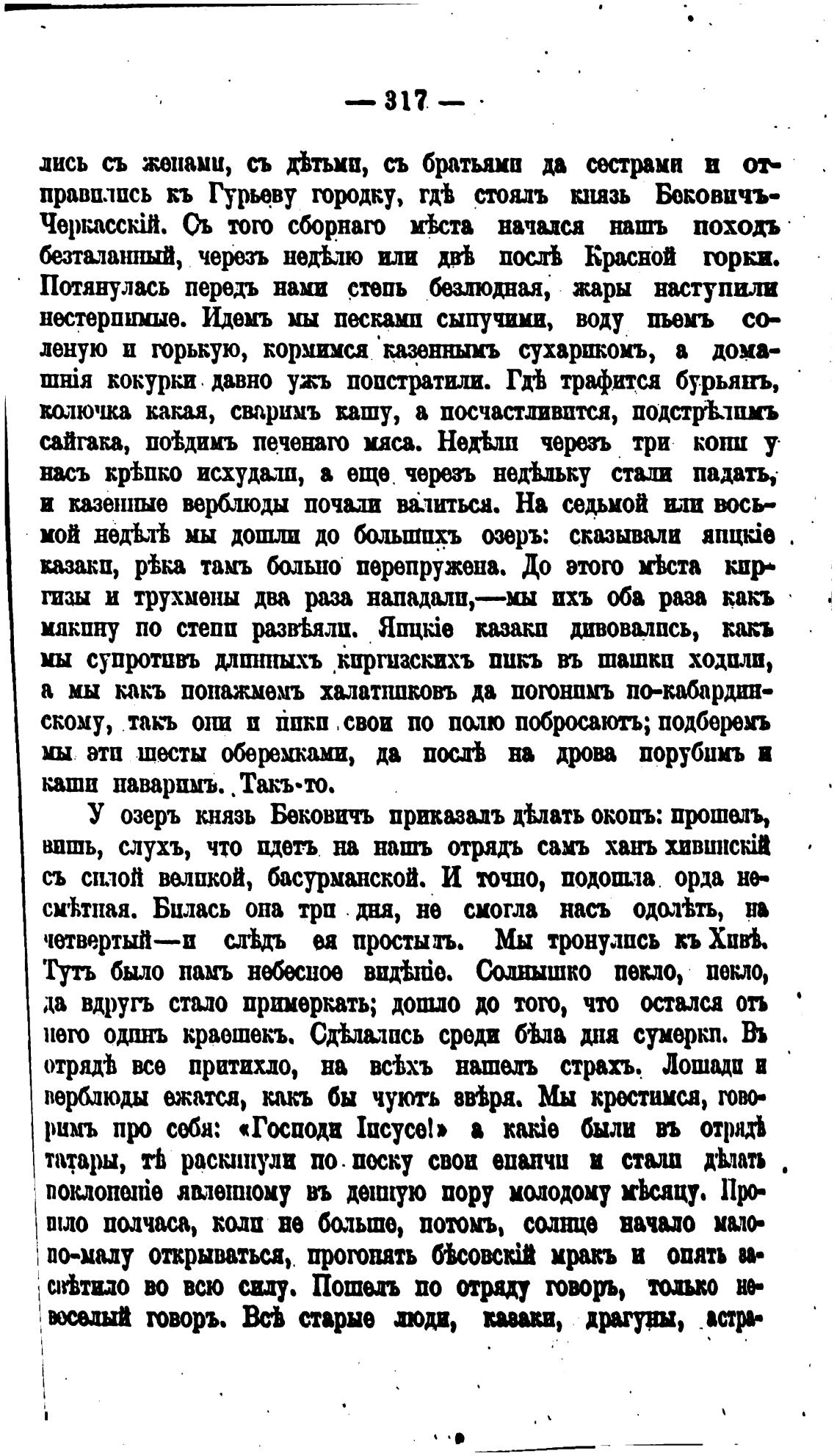 нмерпиие. Идемъ мы песками сыпучими, воду пьемъ съ