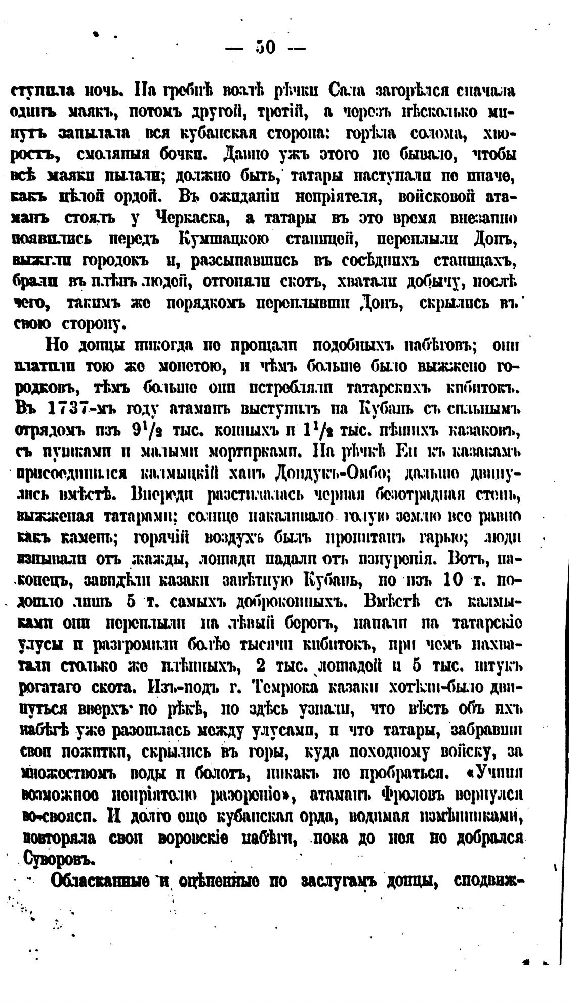 Въ 1737-мъ оду атамань выступшть па Кубань съ сплышмъ