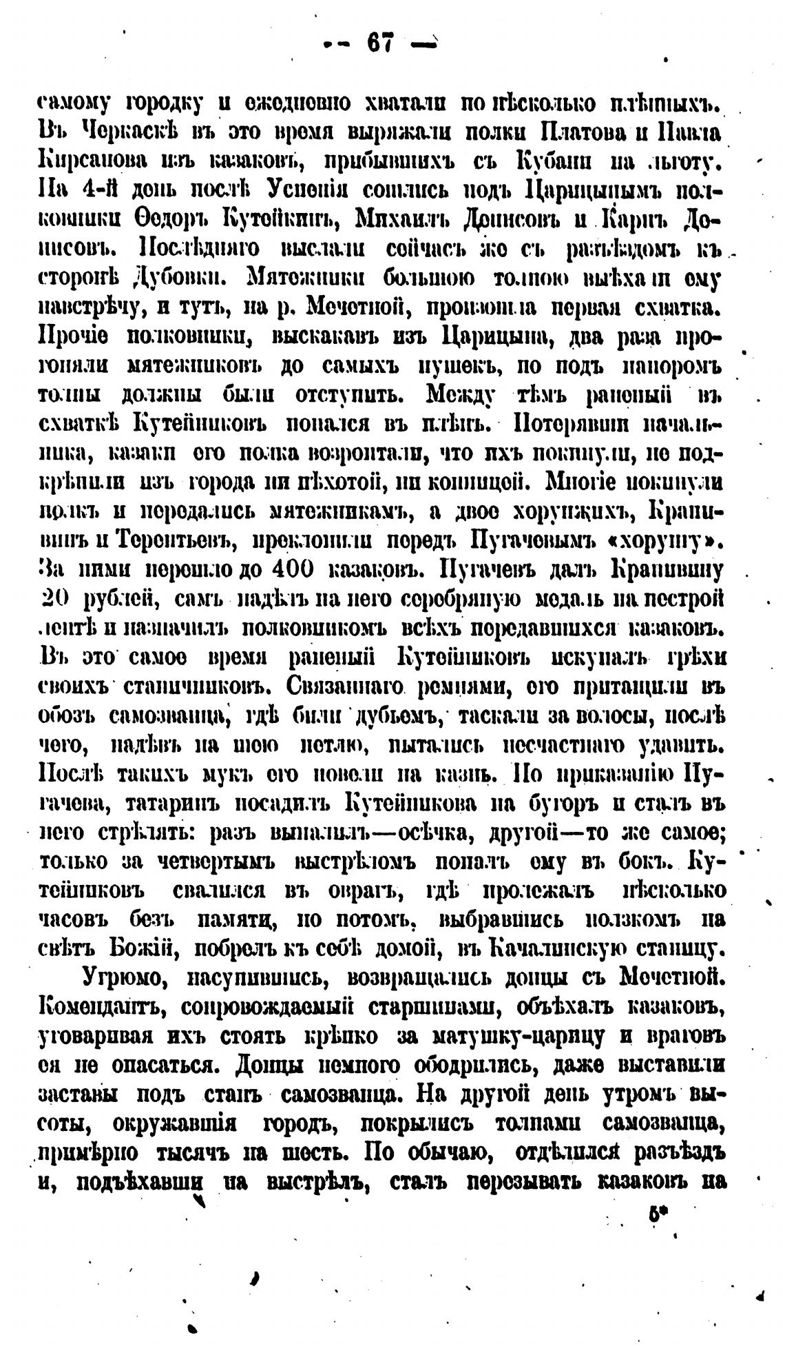 За Ппми пероиило до 400 казакрвъ. Пугачевъ даль Крапивину