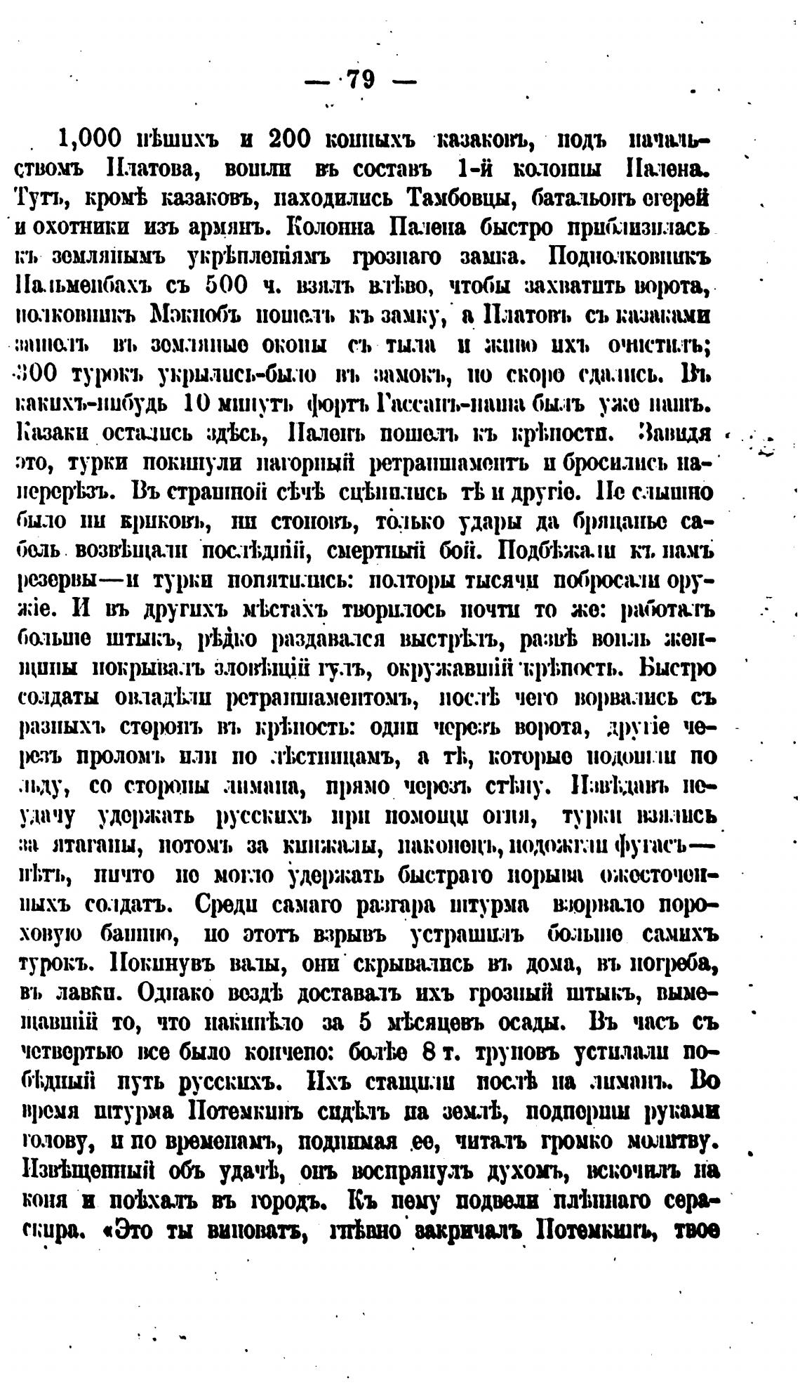 время штурма Потемкшљ сихЕть ва земл•Ь, подпориш руками