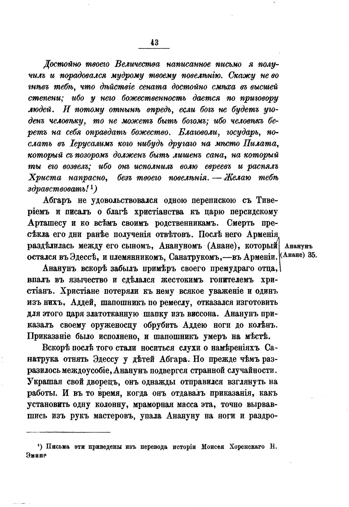 1) Письма эти приведены изъ перевода Моисея Хоренсваго Н.