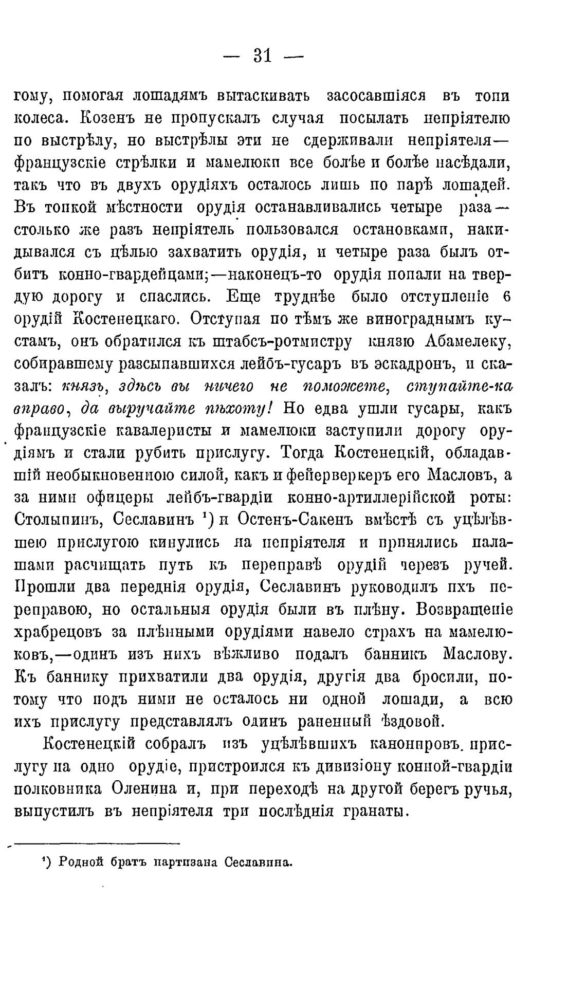 ихъ прислугу представлялъ одинъ раненный гЬздовой.