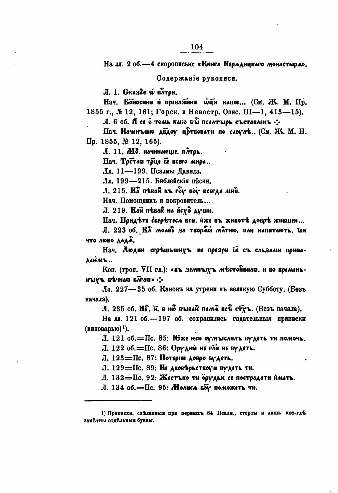 1) Приписки, сдьаввыя при первыхъ 84 Псих, стерты и ишь кн•гд•'
