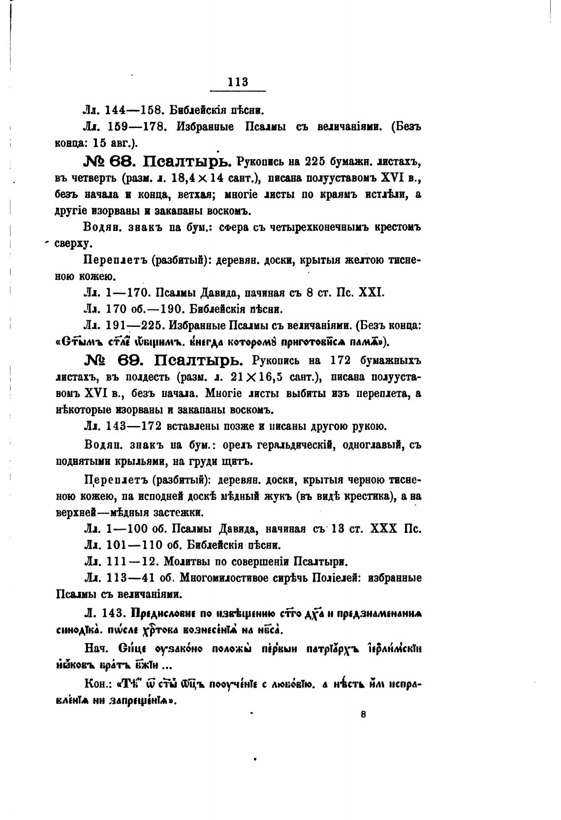 Псалтырь. Рукопись на 225 бумажн. листахъ,