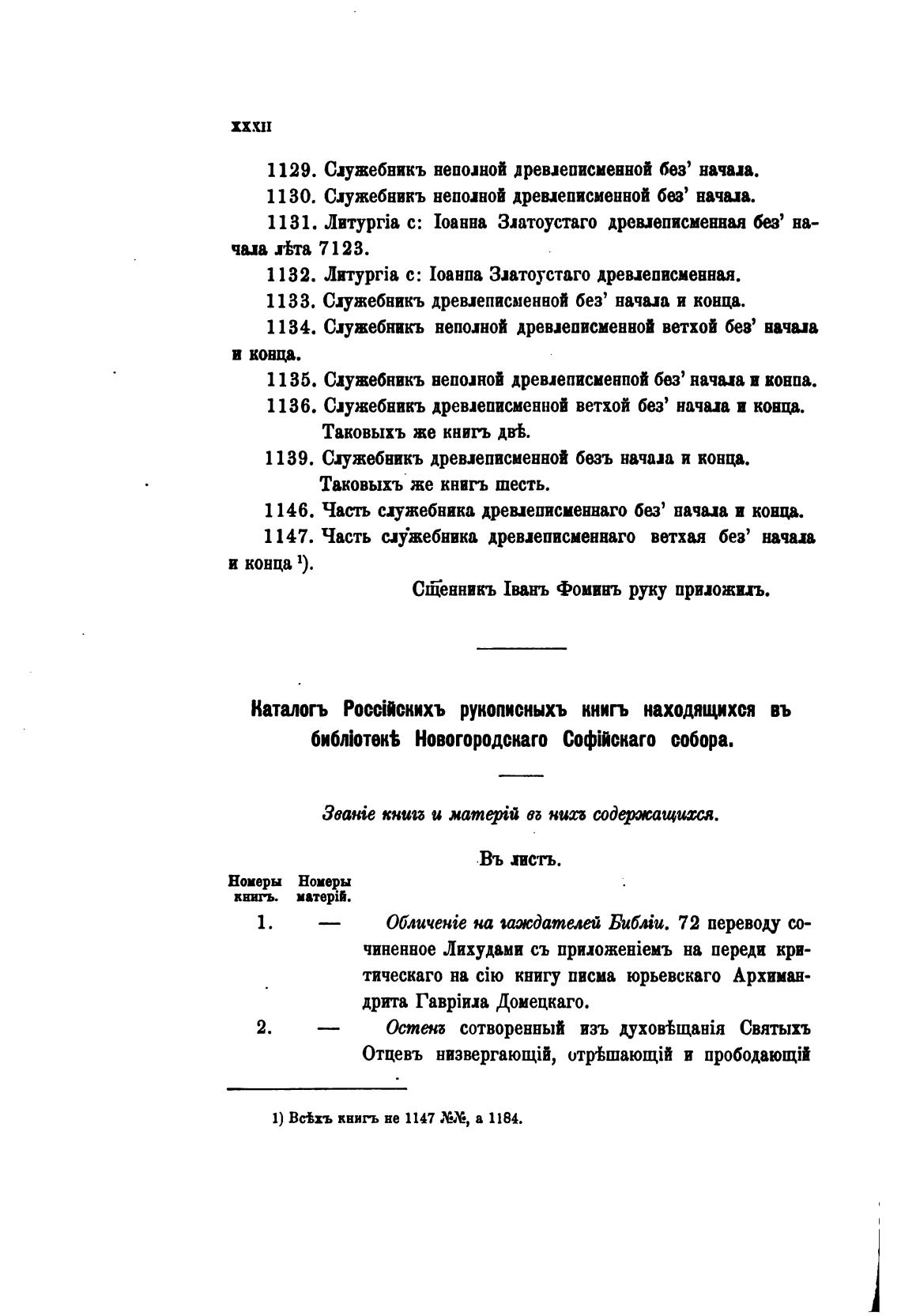 Катиогъ Росстснихъ рукописныхъ книгъ находящихся въ