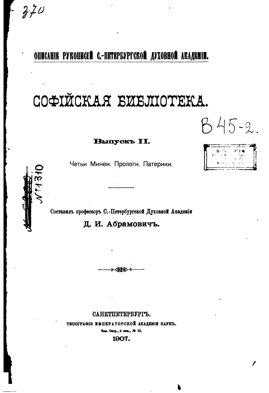 ОПИСАШК РУКОПИСЕЙ с.-пкткрвургской духовной АКАДКШ.