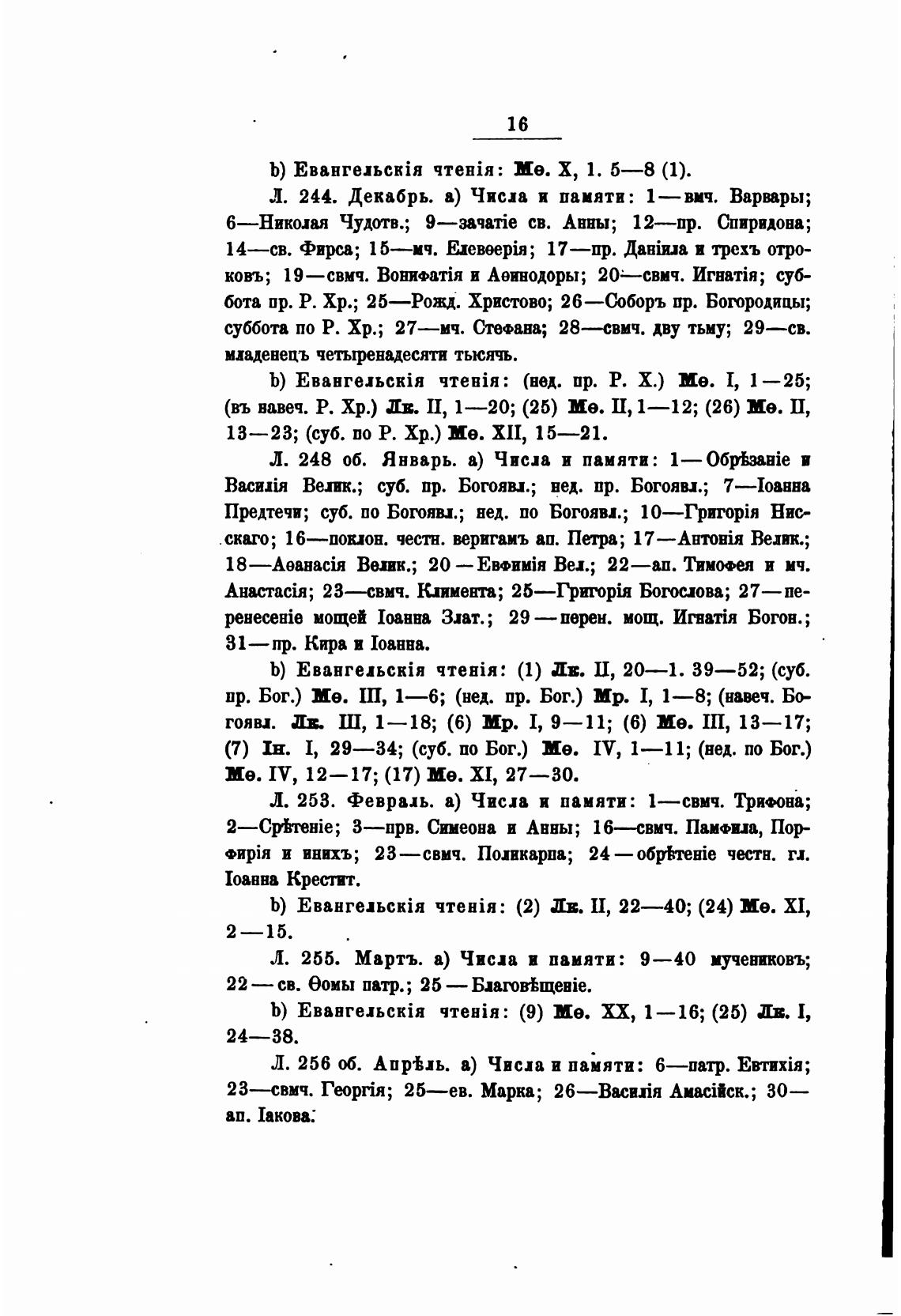 Л. 244. Декабрь. а) Числа и памяти: 1—вмч. Варвры;