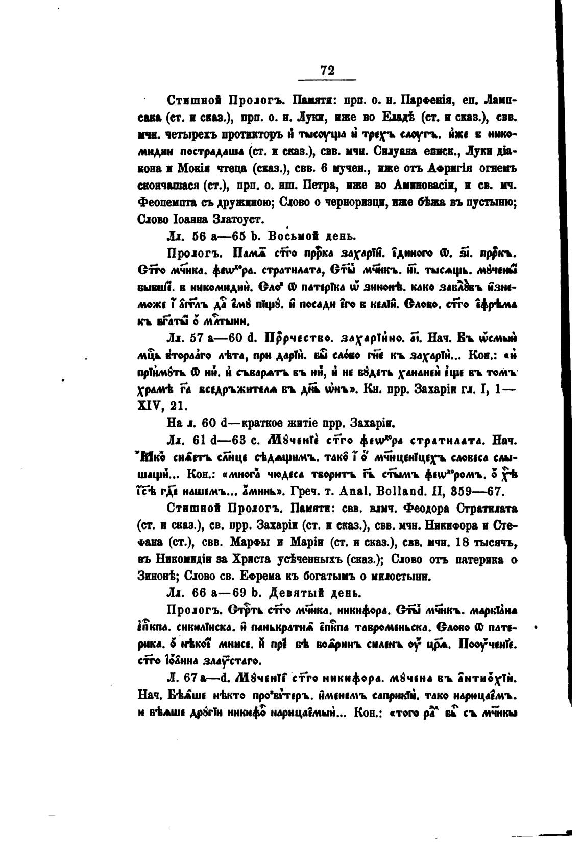 (ст. в сказ.), св. прр. 3axapik (ст. и сказ.), свв. мчн. Никифора и Оте-
