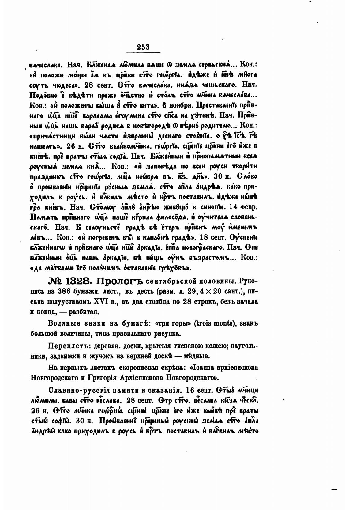 сана полууставомъ XVI в., въ два столбца по 28 строкъ, безъ начала