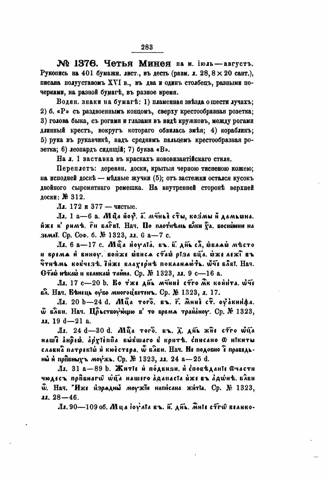 Рукопись на 401 бумажн. лист., въ десть (равм. х. 28, 8 х 20 савт.),