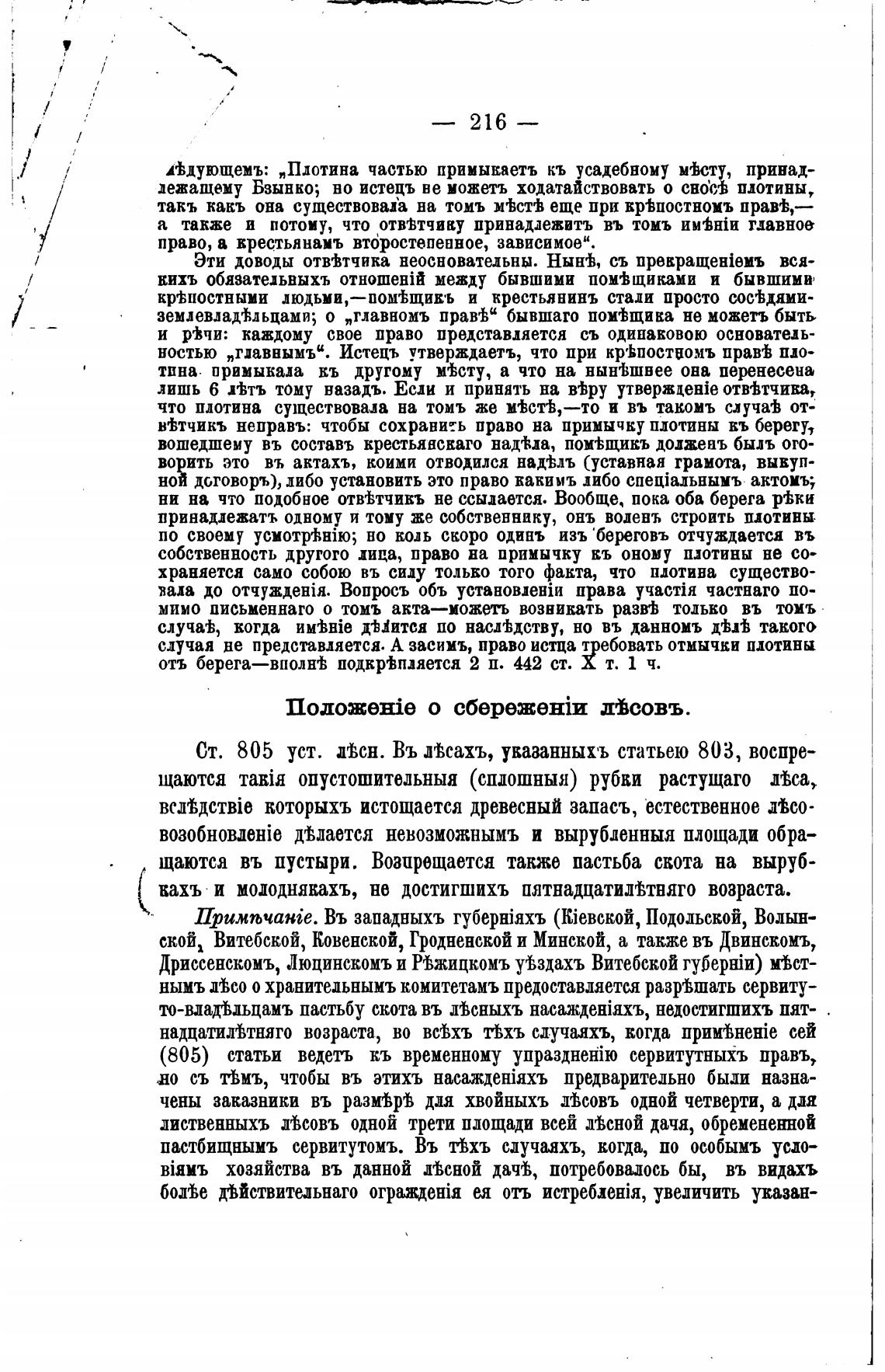 Ст. 805 уст. Лсн. Въ Лсахъ, указанныхъ статьею 803, воспре-