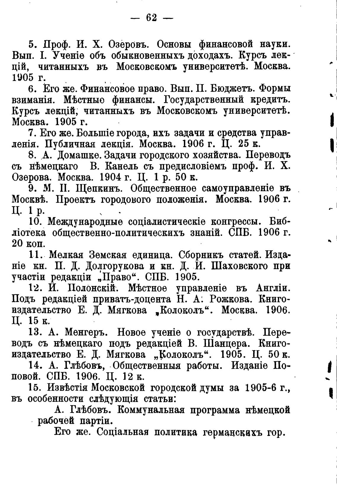 5. Проф. И. Х. Озеровъ. Основы финансовой науки.
