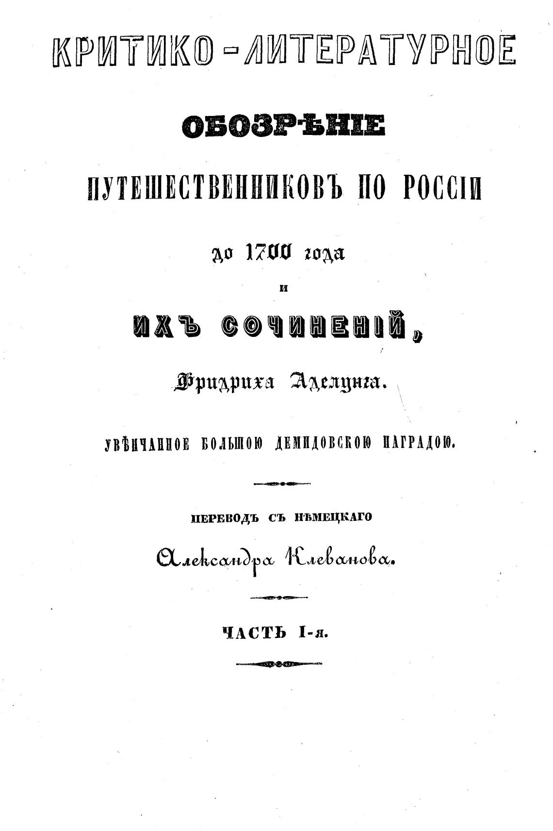 ПУТЕШЕСТВИШИКОВЪ ИО РОССIИ