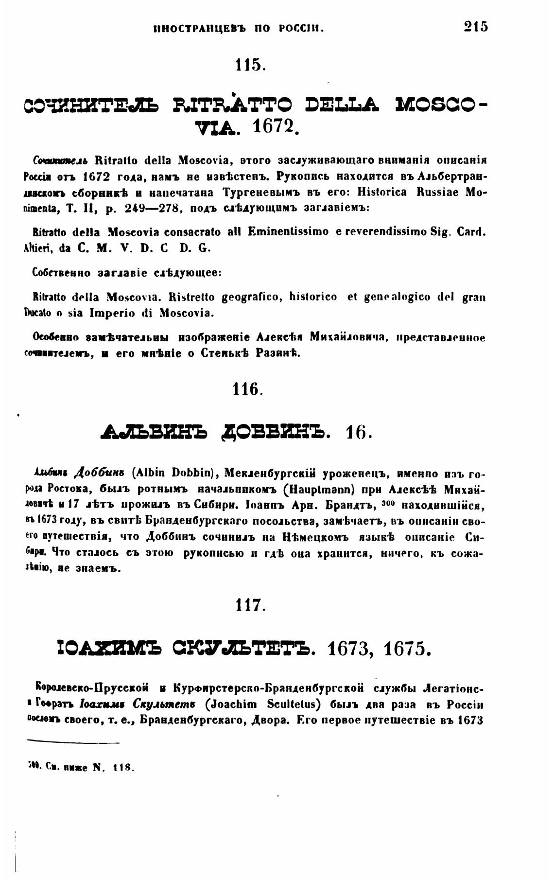 Pxciu отъ 1672 года, вамъ не взвтстенъ. Рукопись находится въ Альбертран-