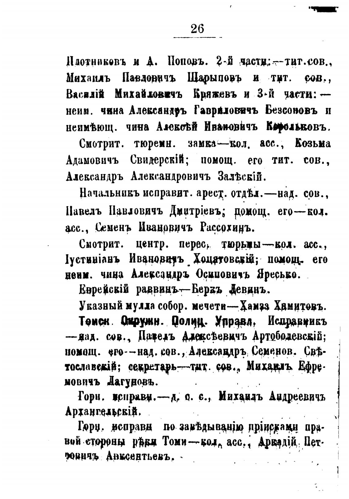 Начальникъ исправит. аресх. отдЬ.—над. сев. ,