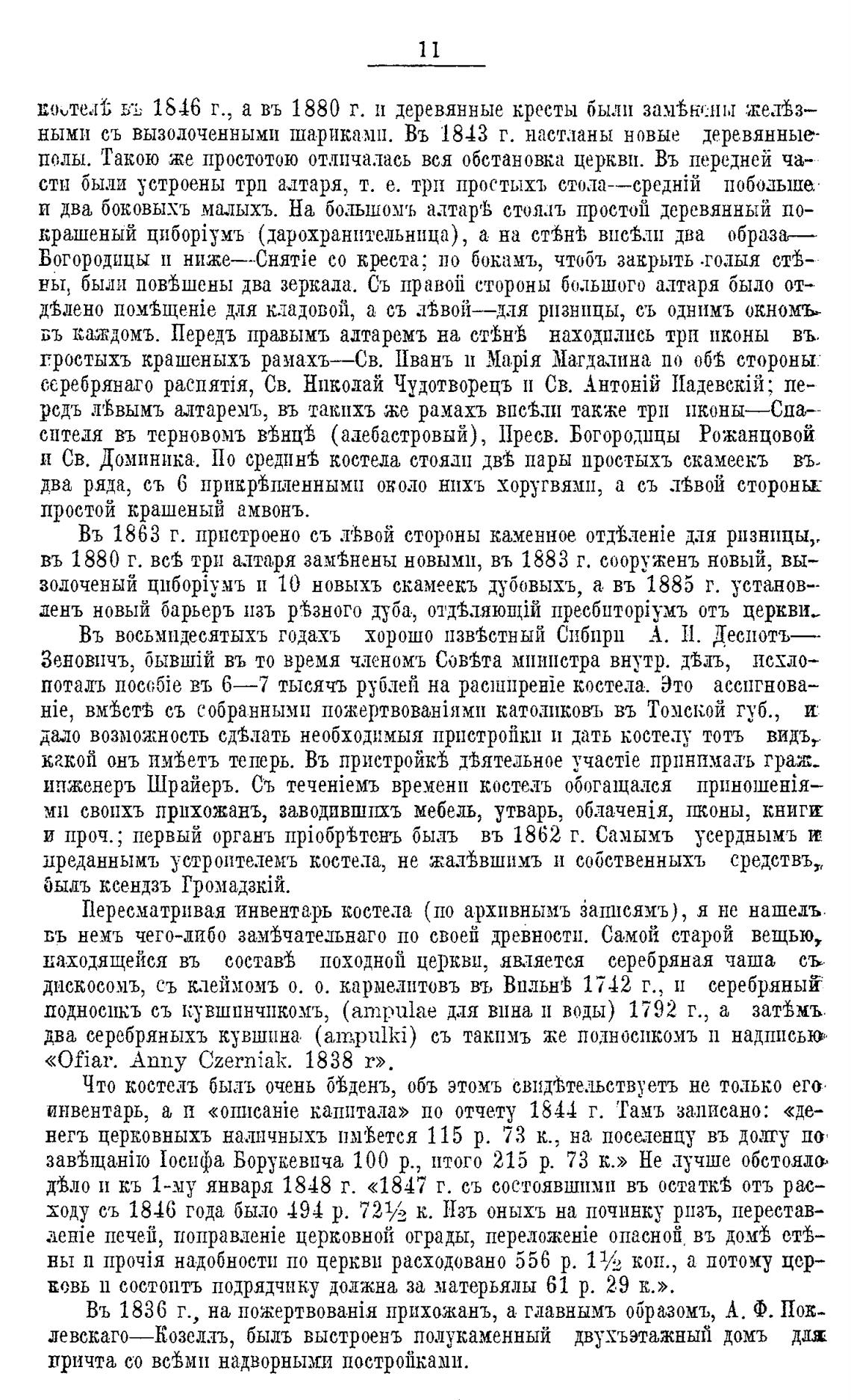 Пересматривая инвентарь костела (по архивнымъ бат:сямъ), я не нашелъ