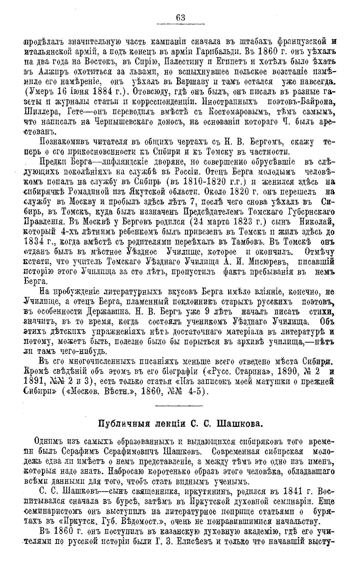 Познакомпвъ читателя въ објцихъ чертахъ съ Н. В. Бергомъ, скажу те-