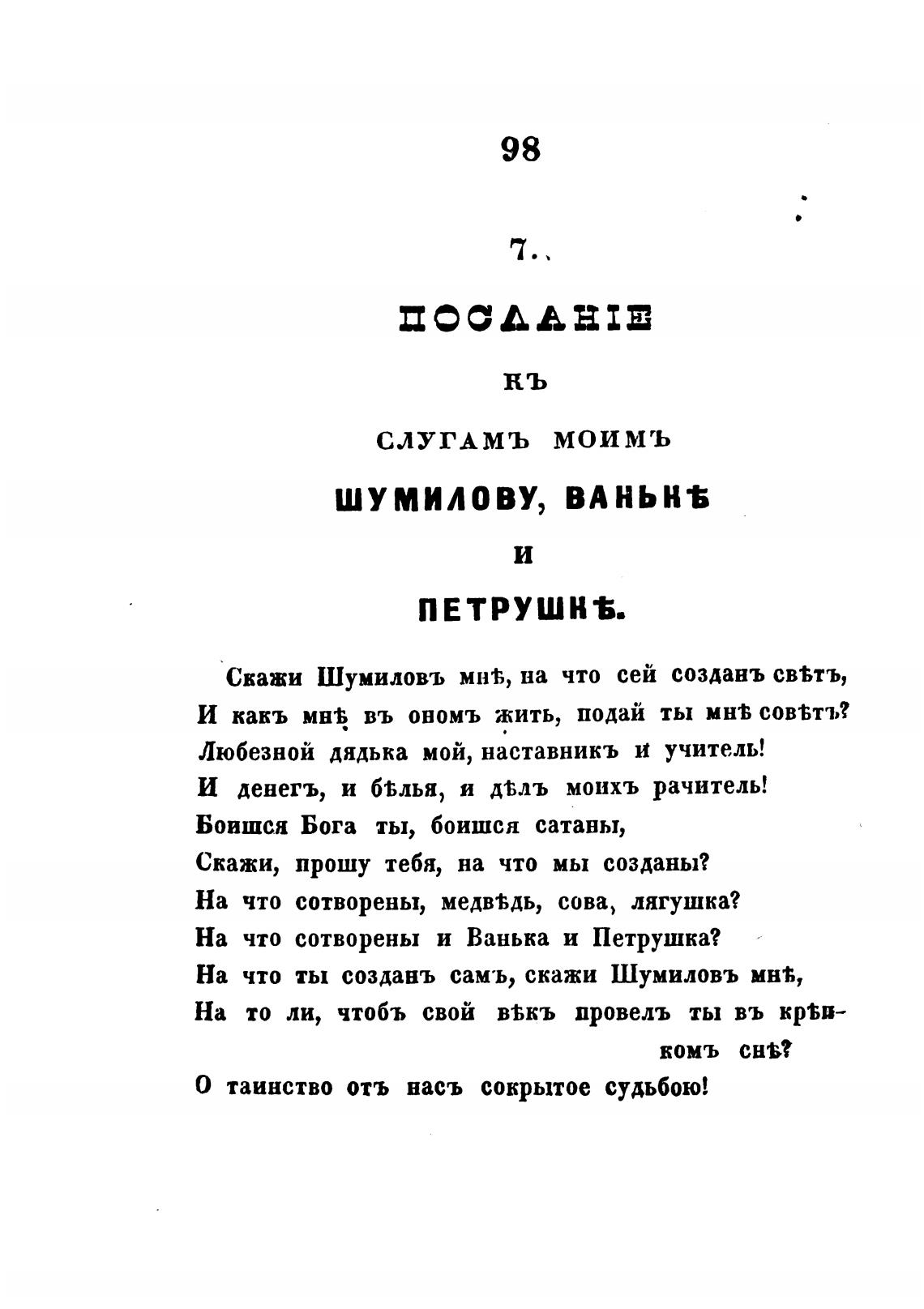 На что ты создань самъ, скажи Шумиловъ мня