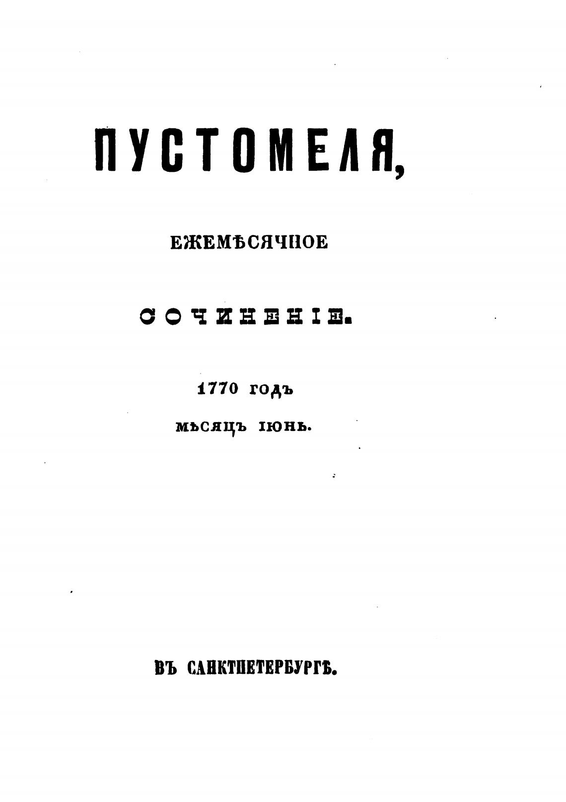 Пустомеля. Сатирический журнал. 1770. - Афанасьев А. Н. (издатель)