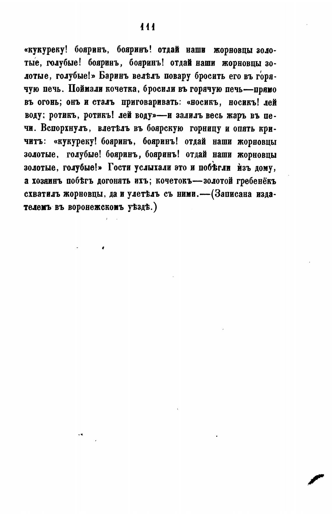 читъ: «кукуреку! боаринъ, бояринъ! отдай наши жорвовцы