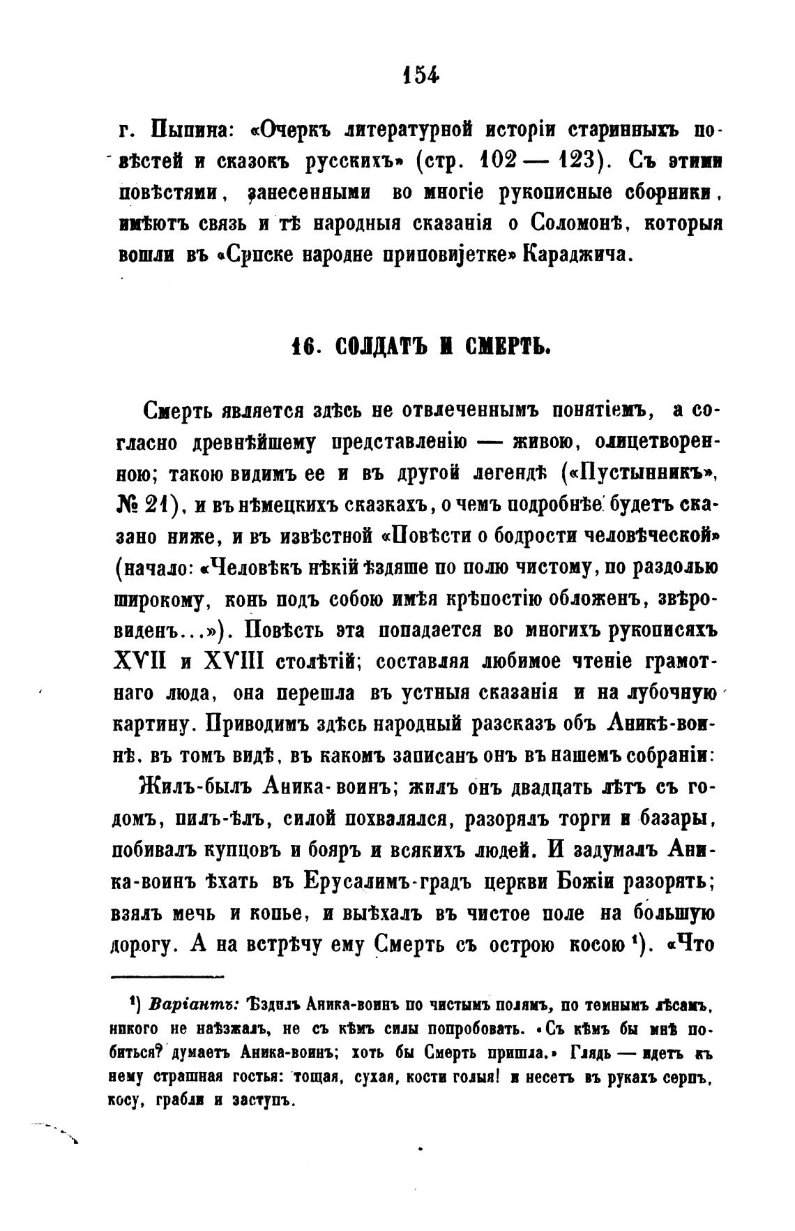 биться? думаетъ Аника-воинъ; хоть бы Смерть приши.• Глядь
