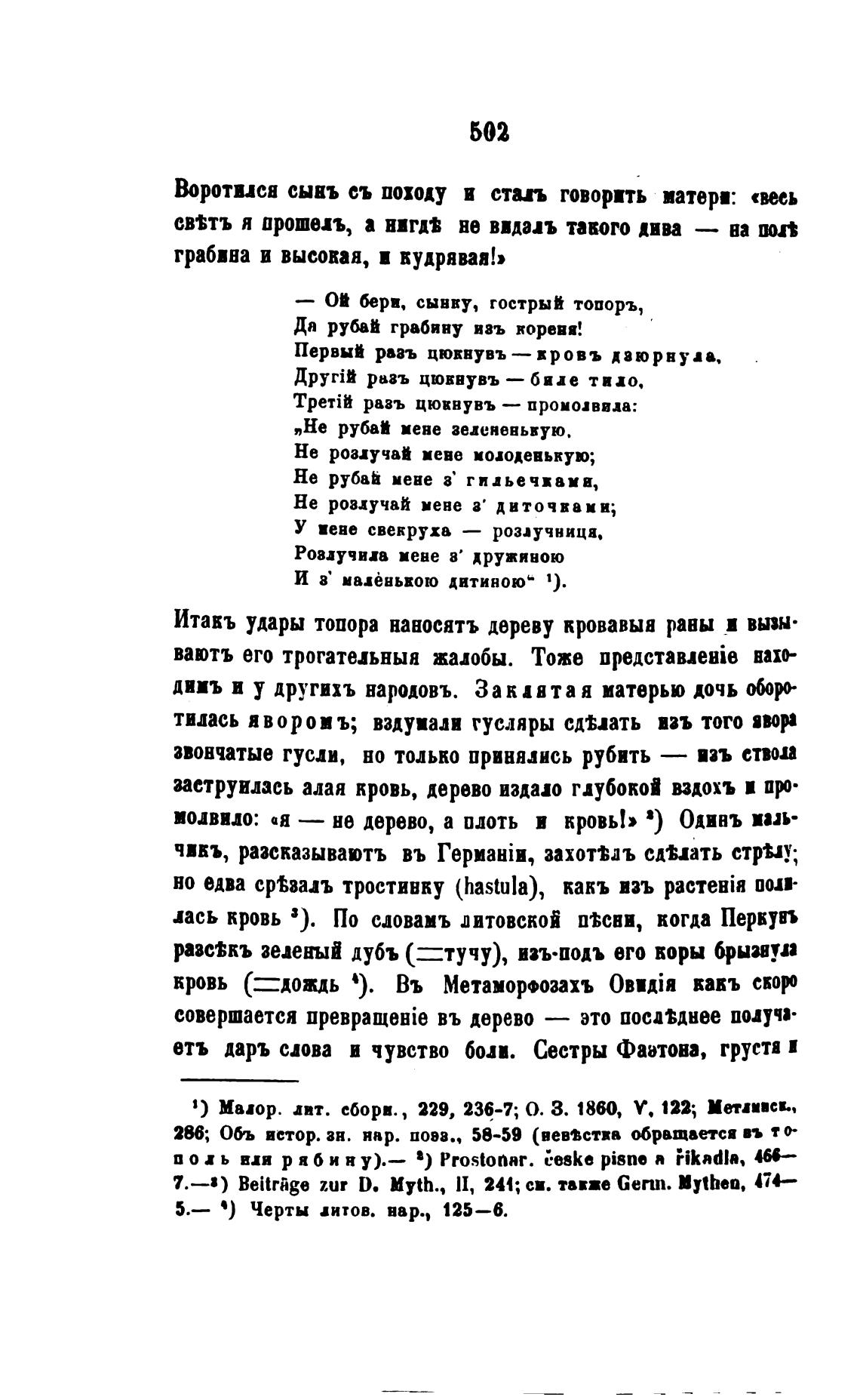 Итакъ удары топора наносятъ дереву кровавыа раны и вызн•