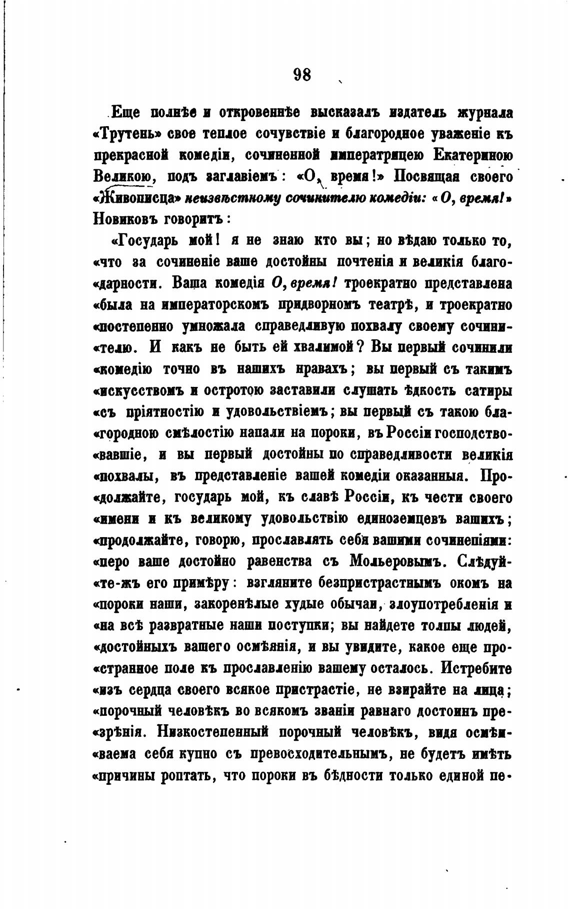 «перо ваше достойно равенства съ Мољеровымъ. Самуй-