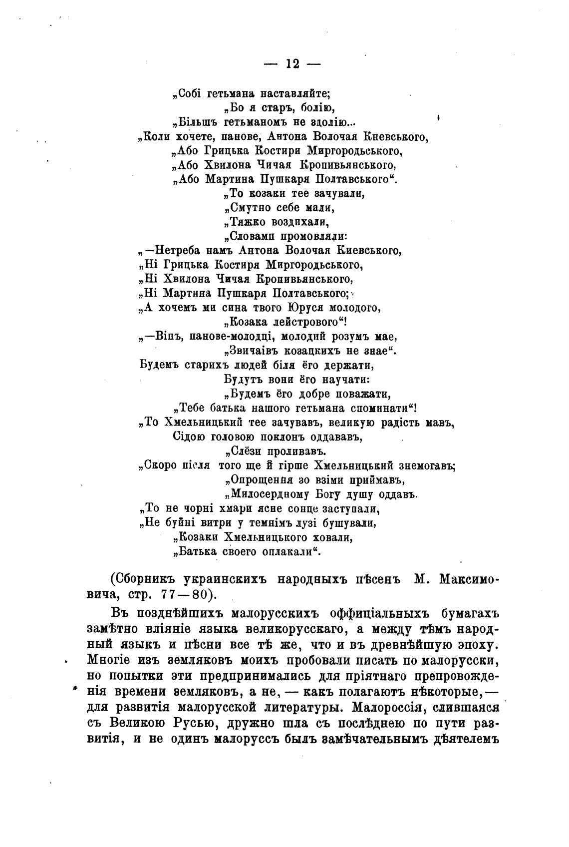 (Сборникъ украинскихъ народаыхъ п%сенъ М. Максимо-