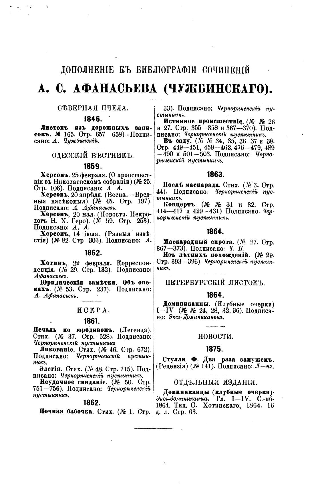 А. С, АФАНАСЬЕВА (ЧУЖБИНСКАГО).