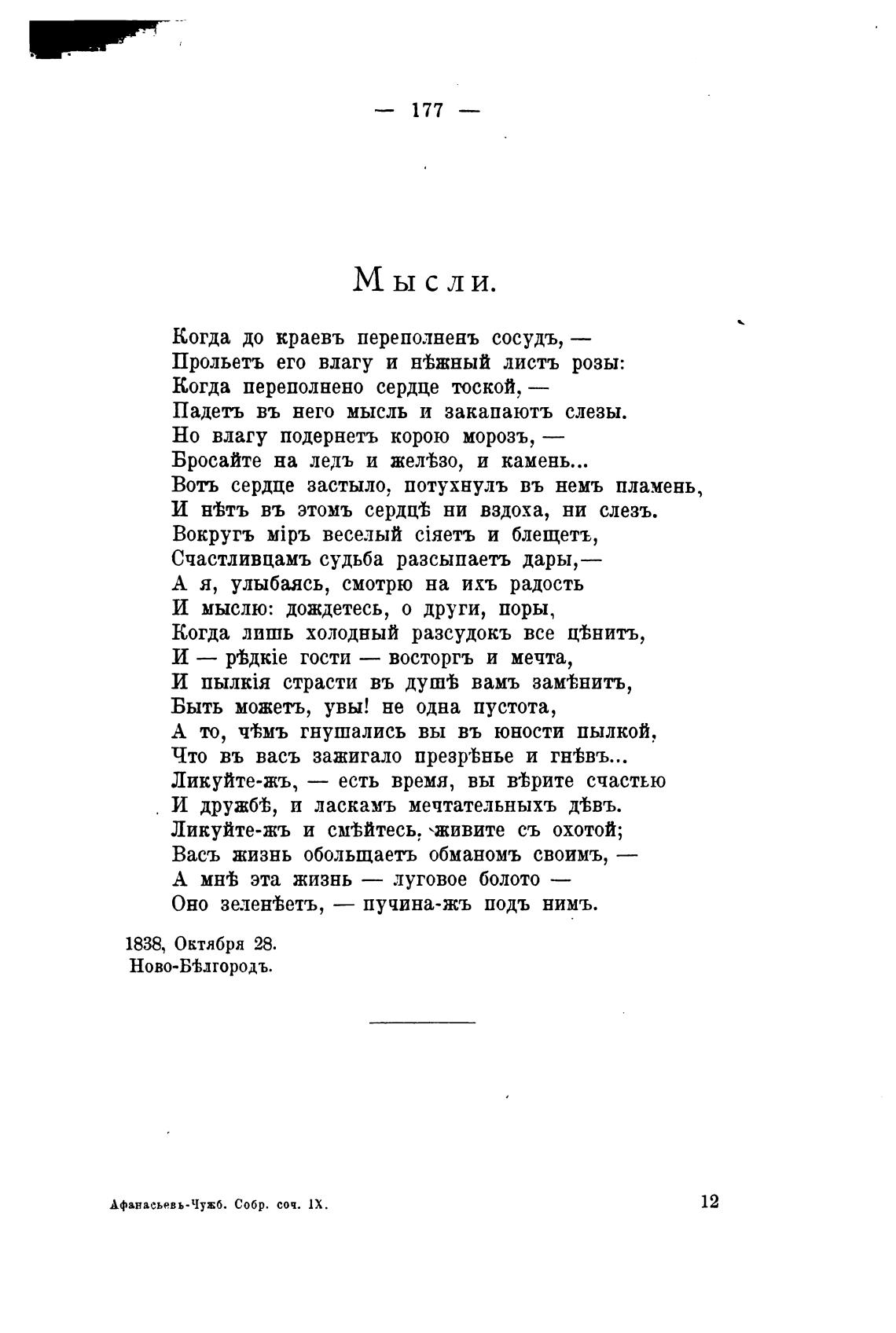 Падеть въ него мысль и закапаютъ слезы.