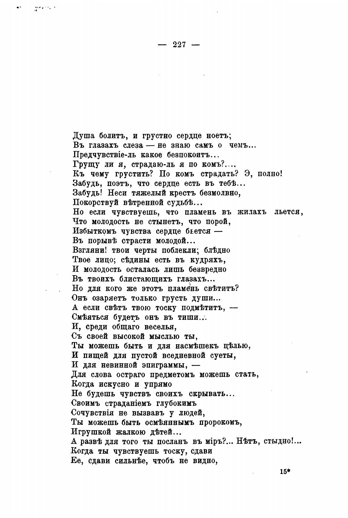 Душа болитъ, и грустно сердце ноетъ;