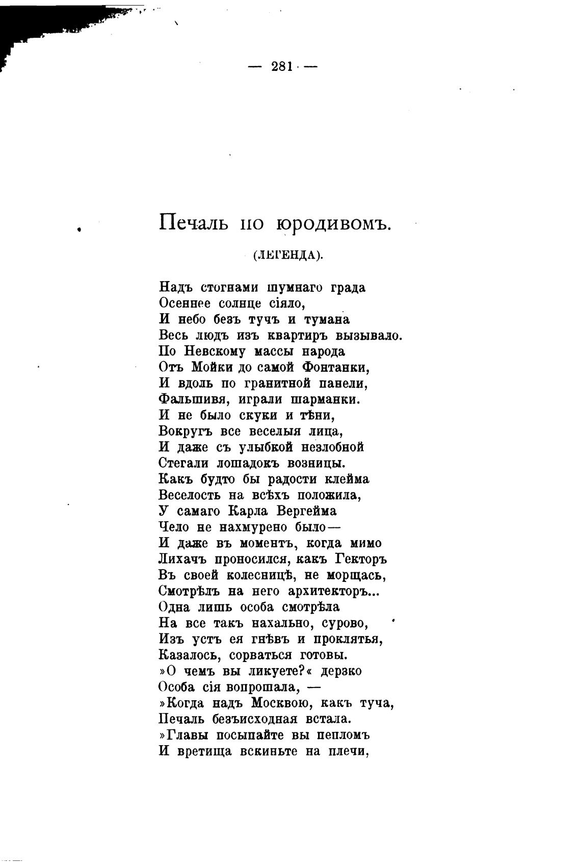 Печаль по юродивомъ.