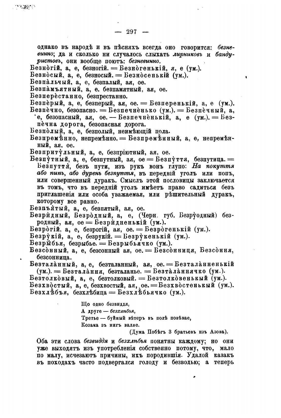 однако въ народгћ и въ П'Всняхъ всегда оно говорится: безне-