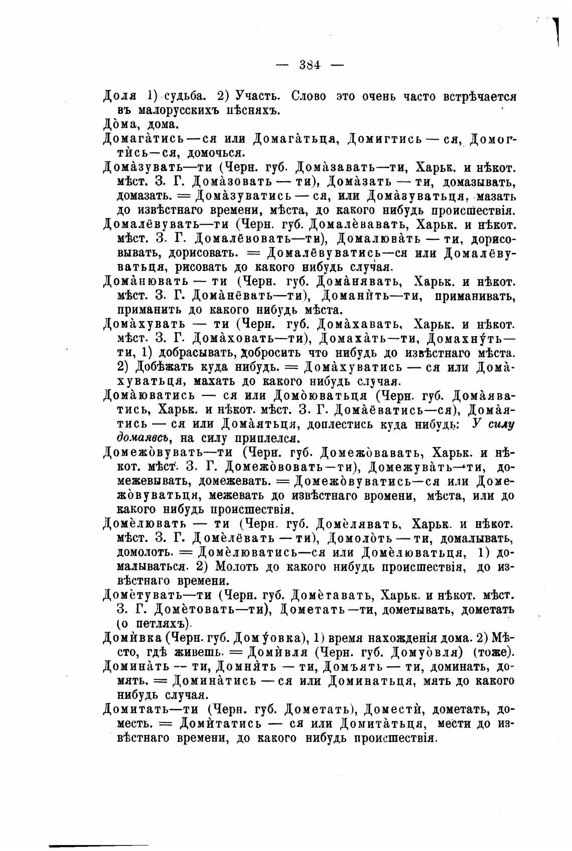тись, Харьк. и нфкот. М'ћст. З. Г. ДоПёватись—ся), Домйя-