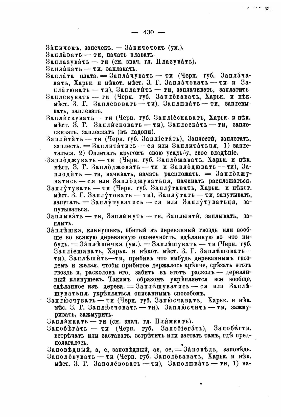 вать, Харьк. и н±кот. мТст. З. Г. Запл{човать — ти. и За-