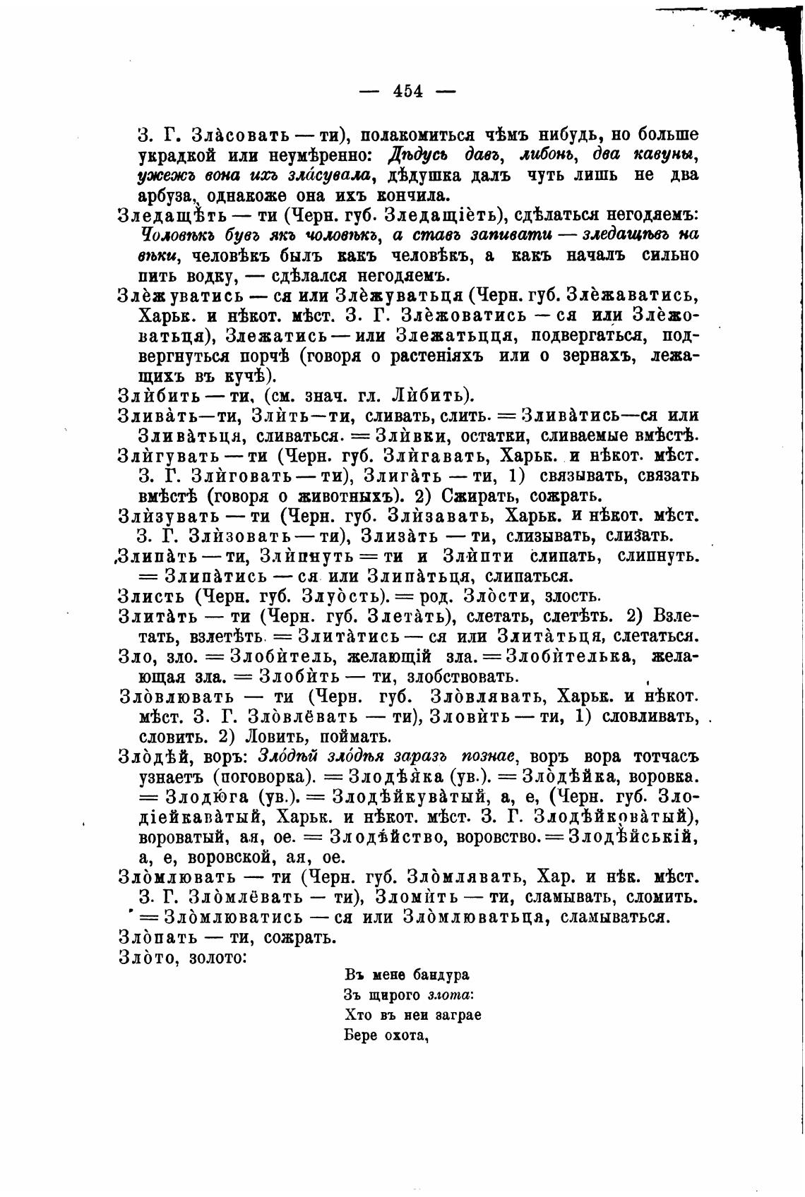 Злйзувать — ти (Черн. губ. Злйзавать, Харьк. и Н'ЬЕOТ. М'Ьст.