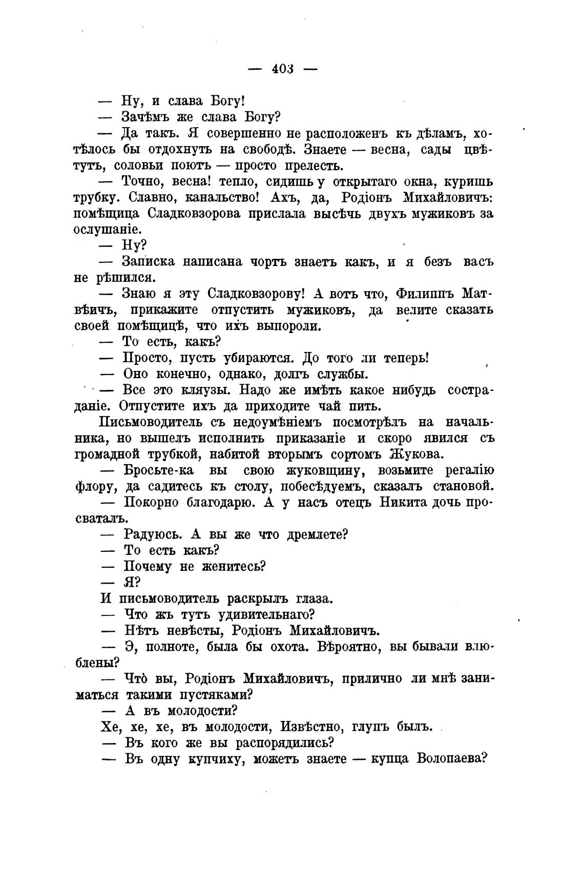 флору, да садитесь кь столу, побес'Ьдуемъ, сказалъ становой.