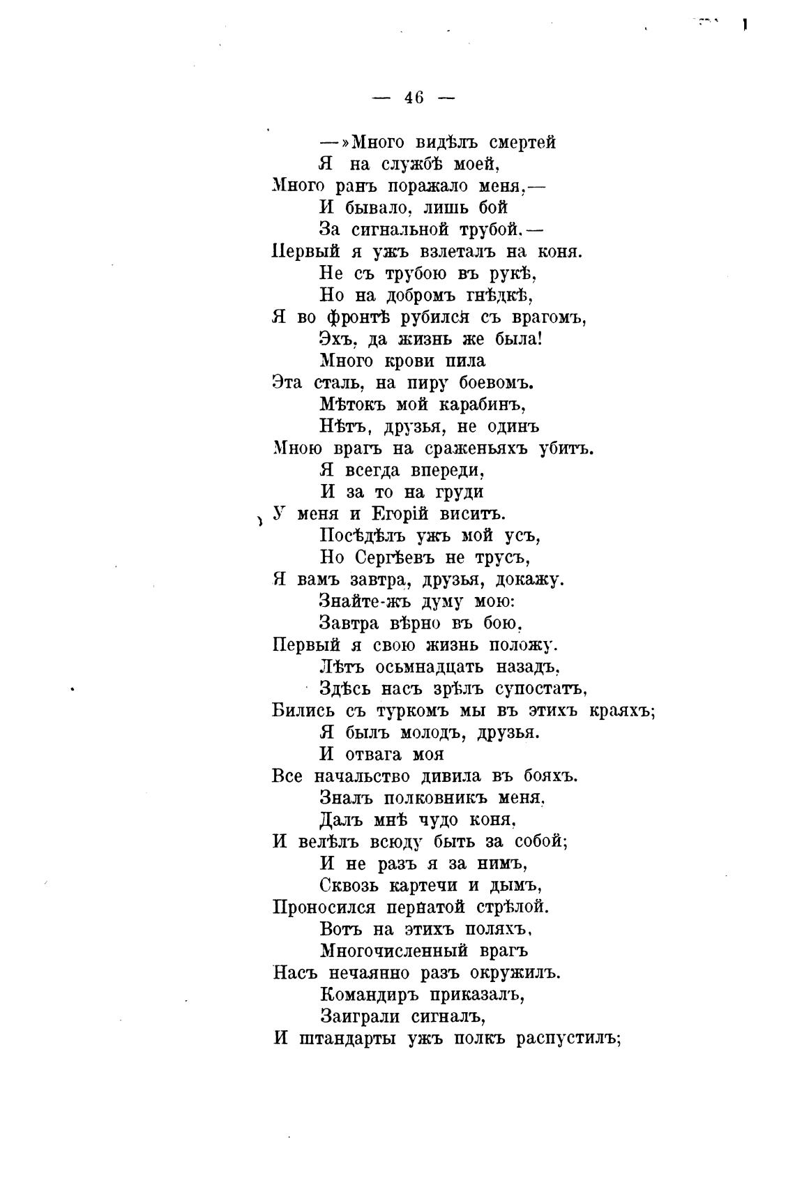 Я во фЏ)нтЬ рубилсй съ врагомъ,