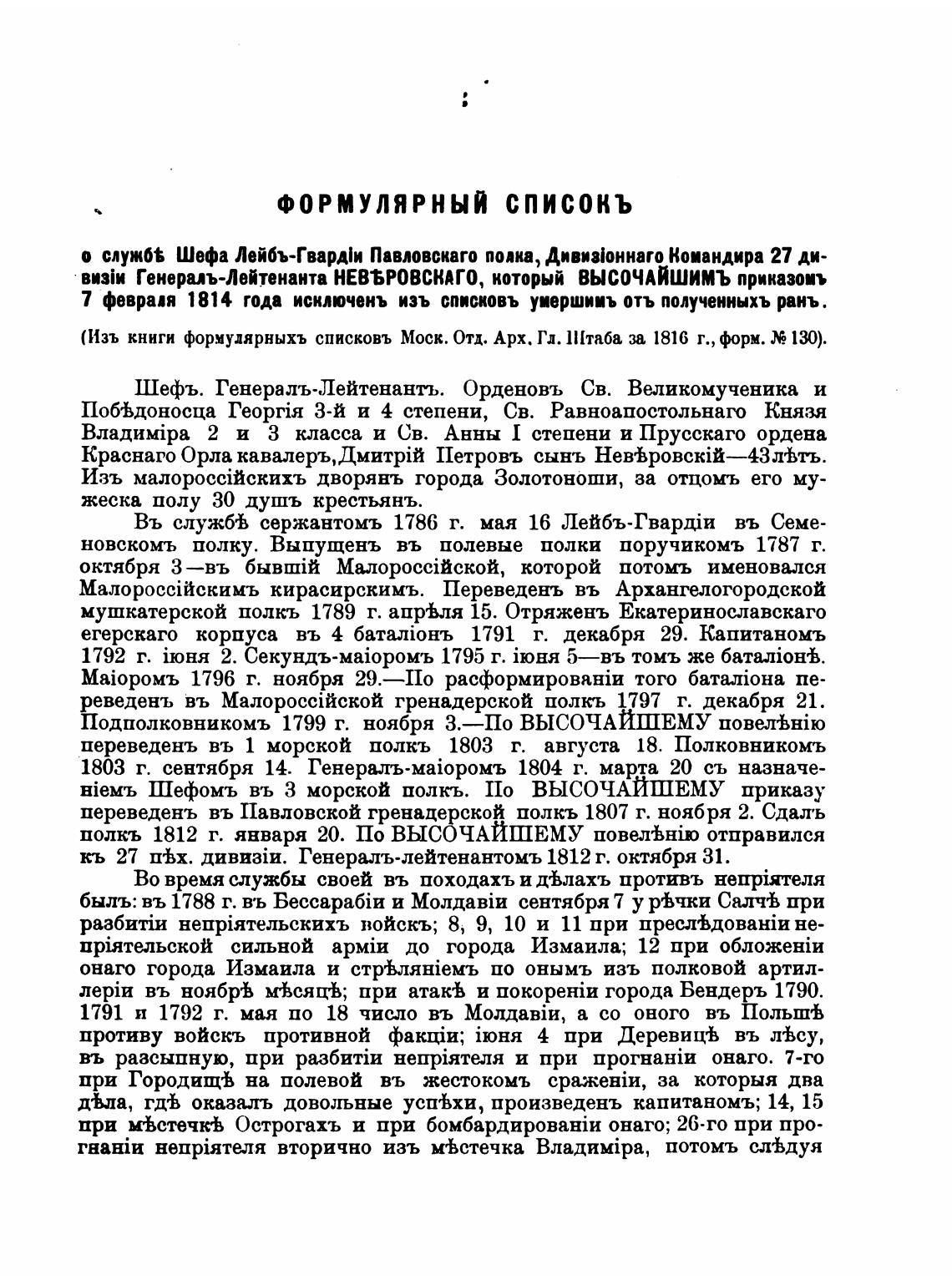 (Изъ книги формулярныхъ списковъ Моск. Отд. Арх. Гл. llha6a за 1816 г., форм. 130).